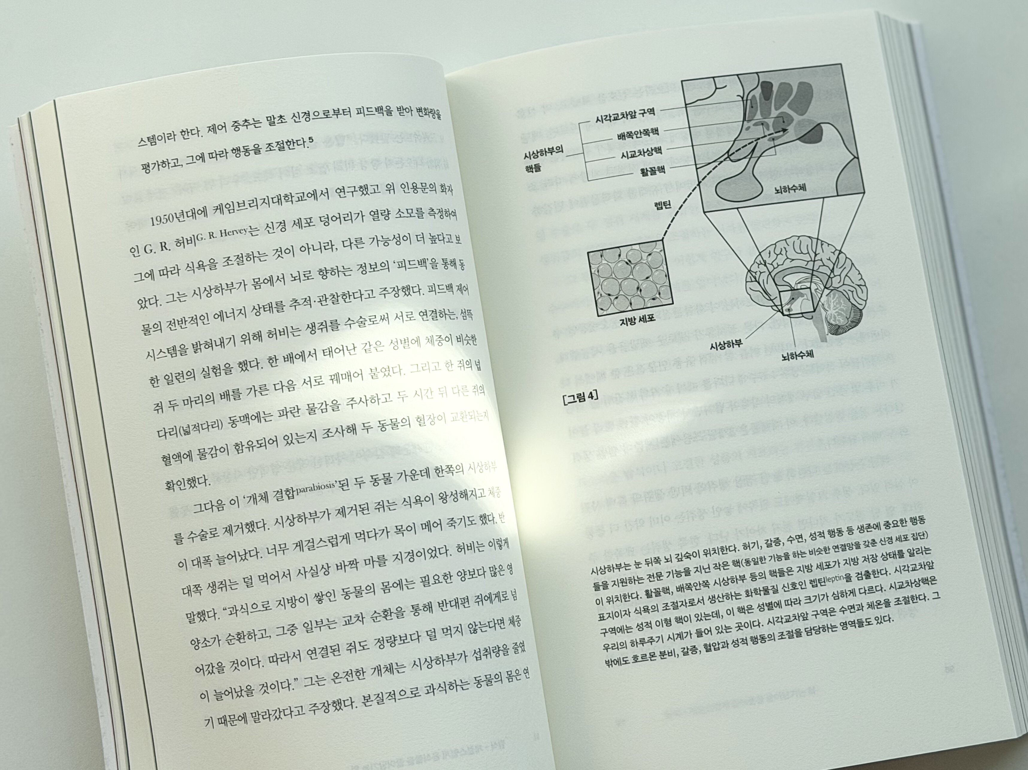 저자는 수련의로 일하던 시절 내과 당직을 서다가 막 구급차에 실려 온 환자를 봐달라는 연락을 받는다. 응급실의 칸막이 커튼을 젖히자 몸집이 산처럼 거대한 남자가 누워 있는 모습이 눈에 들어온다. 거대한 몸집 때문에 아기처럼 무력하게 누워 있는 남자를 보며 대부분의 사람들은 자제력이 부족하다거나 게으르다고 생각하지 않았을까. 비만은 대부분의 사람에게 비슷한 감정을 불러 일으킨다. 체중이 먹는 양과 움직이는 양만으로 결정된다는 생각은 수많은 다이어트와 운동 프로그램을 부추긴다. 하지만 실상은 그렇게 단순하지 않다. 이 책은 특정 신경 세포 집단이 식욕을 억제하지 못하게 만든다는 연구 결과를 비롯해서 각종 신경학적 지식을 토대로 인간의 체중과 식욕에 대한 우리의 편견을 넘어선다.