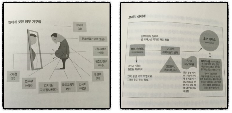 정부 기구를 인체에 비유해보면 청와대는 뇌, 기획재정부는 심장, 환경부는 폐, 감사원과 국가정보원은 간, 법무부는 신장, 국세청은 위와 같습니다. 이들 장기가 하나라도 병들어 있으면 안 됩니다. 관료주의는 질병을 유발하는 유해균과 같습니다.