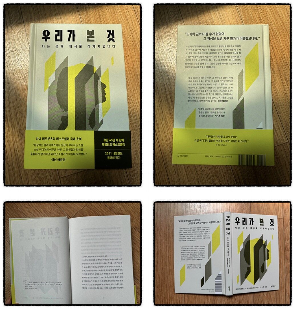《우리가 본 것》은 2021년 네덜란드를 대표하는 작가의 작품으로 선정된, 하나 베르부츠 작가의 소설이에요. 첫 장면부터 시작되는 질문, 그 질문을 받고 있는 사람이 바로 주인공 케일리인데, 자연스럽게 그녀가 들려주는 이야기를 따라가다 보니 많은 것들이 보였어요.