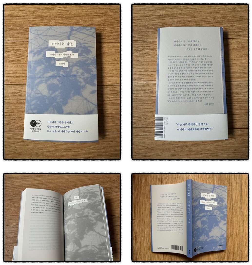 《태어나는 말들》은 '우리의 고통이 언어가 될 때'라는 부제가 달려 있어요. 이 책은 제11회 브런치북 출판 프로젝트에서 대상을 수상한 조소연님의 원작 <태어나는 말들>을 바탕으로 만들어졌다고 해요. 제목으로 짐작했지만 본문의 첫 문장은 전혀 예상도 못한 '고통'이었어요.