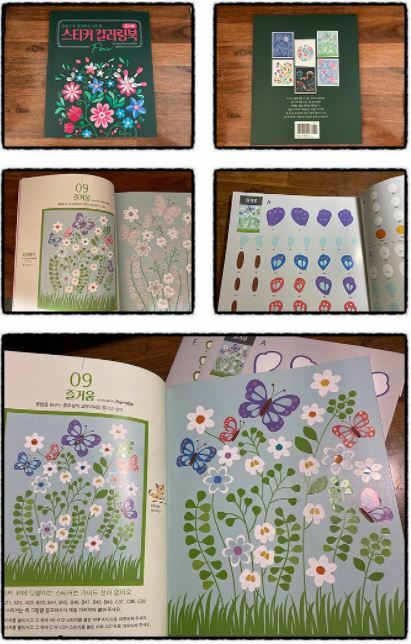 스티커 컬러링북이란 밑그림 도안 위에 순서대로 스티커를 붙여 완성하는 아트북이에요. 색연필이나 수채화물감 등 채색도구가 필요 없기 때문에 간편해서 좋아요.
