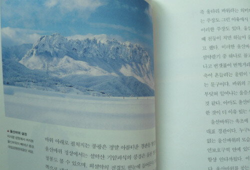 이 책에 실린 명승들의 대부분은 한 번 이상 가본 곳들이지만 사진을 보는 순간 낯설게 느껴지는 곳들도 있다. '내가 이곳을 찾았을 때는 이런 모습을 보지 못했는데..' 하는 경우인데, 그건 같은 곳이라고 해도, 계절에 따라서, 날씨에 따라서, 보는 방향에 따라서 다양한 자태를 드러내기  때문이다.