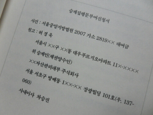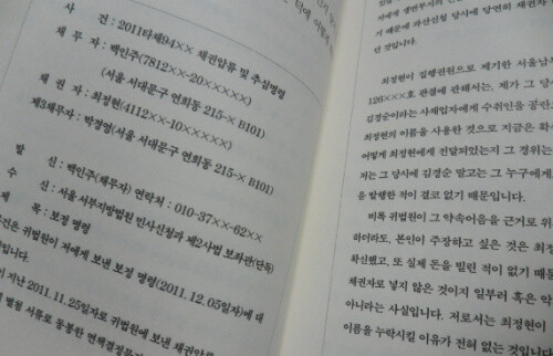 특히 작가는 소설 속에 '승계집행문 부여 신청서', 법원 결정문', 채권압류 및 집행취소 신청서' 등의 법원에 제출하거나 법원에서 그녀에게