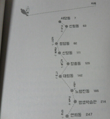 이 책의 목차는 그녀가 상가수첩을 돌리기 위해서 찾아가는 10곳의 동네이름으로 되어 있다.