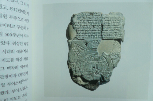 " 바빌로니아 세계지도는 지구를 먼 우주에서 바라보는 꿈이 실현되기 약 3000년 전에 마치 신이 지상의 창조물을 바라보듯 세계를 위에서 내려다 보는 시선을 보여준다. " (p.26)