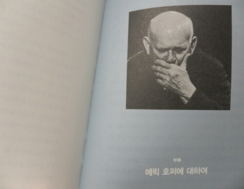 이 책의 부록으로는 '에릭 호퍼에 대하여'란 글이 있는데, 이건 72살이 된 에릭 호퍼를 인터뷰한 '셰일러 k  존슨'의 글이다.