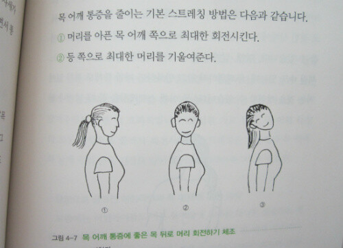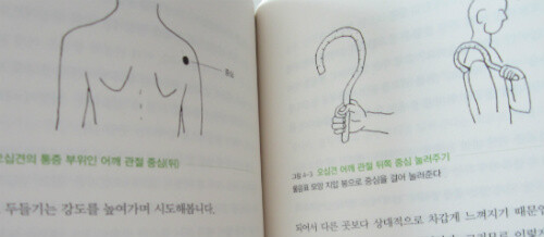 저자는 이런 질병들에 대한 이해를 돕기 위해서 그림을 그려서 설명해 주고, 그 치료 방법인 자가 체조들에 대한 내용도 그림으로 그려서 쉽게 따라 할 수 있게 도와준다.