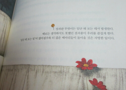 그러나, 이 책이 가지는 의미는 다 알고 있는 내용들이지만 이 책을 읽으면서 마음 속에 또 다시 작은 '울림'을 가져다 주기 위함이 아닐까 생각됩니다.  ' 울림은 꿈과 행복의 문을 열어 줄 비밀의 열쇠' 이기에.