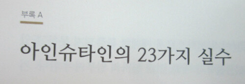 이 책의 부록에는 아인슈타인의 이론 중에서 23가지 실수를 발췌해 놓았다. 그 실수들이 있었기에 아인슈타인이 그 누구 보다 훌륭한 과학자로서 빛나는 것이고, 이 실수들을 바탕으로 더 획기적인 것들이 만들어질 수 있기도 했다.