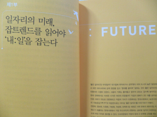 이 책의 키워드는 ' FUTURE'와 ' MY JOB' 이다. 내:일(MY JOB)을 찾기 위해서는 어떻게 해야 하는가에 관하여 이 두 단어의 알파벳을 가지고 11가지 키워드를 던져 준다.