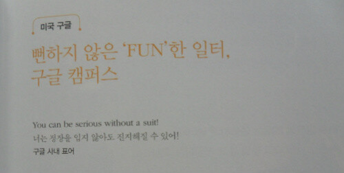 구글문화의 중심축이 'Fun'이니, 일은 곧 놀이이고, 그런 환경에서 창의력이 발휘되는 직장이 존재한다.