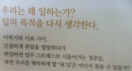 취업은 힘들지만 직장생활은 고달프고 희망이 없으며, 이직을 하자니 그것 역시 수월하지 않은 요즘에 우리는 일자리에 대한 새로운 인식을 가질 필요가 있다.