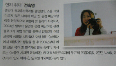 현지 취재를 한 '정숙영'은 <노플랜 사차원 유럽여행>, <사바이 인도차이나>, <금요일 해외여행>을 쓴 여행작가인데, 이 책들은 여행관련 서적으로는 꽤 많이 읽히는 책들이다.