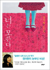 그러나, 나는 <달콤한 나의 도시/정이현 ㅣ 문학과지성사 ㅣ2006>보다는 <너는 모른다/ 정이현 ㅣ문학동네 ;2009>가 작가가 더 세심하게 공들여 쓴 흔적이 묻어나는 소설이다.