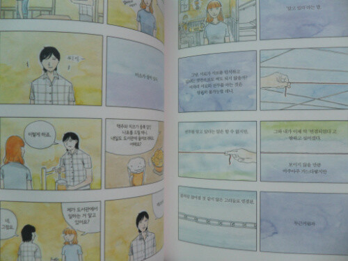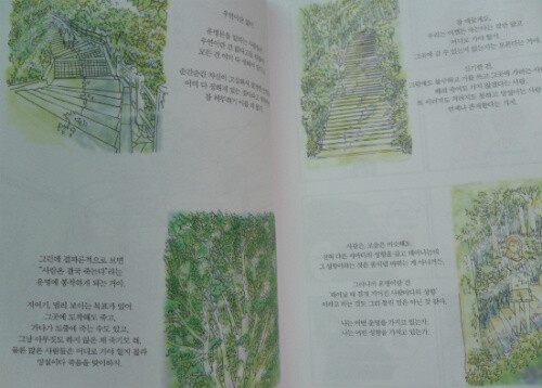 저자는 종이에 직접 스케치하고 채색하는 방법으로 그림을 그렸는데, 그런 표현 방법이 독자들의 마음을 잔잔하게 물들어 가게 한다.