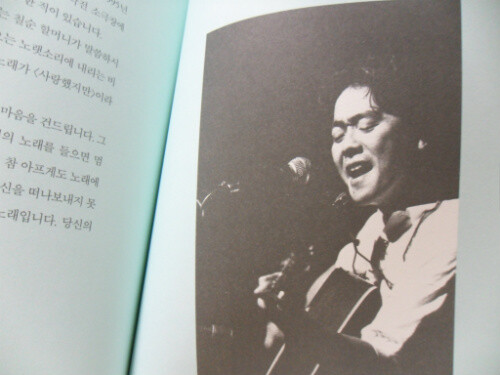 " <사랑했지만>을 부르며 연인을 떠나 보내고, <이등병의 편지>를 훌쩍이며 입대하는 풍경은 습관처럼 익숙한 일이었지요. 그러니까 당신은 지난 15년간 단 한 순간도 이편 세상을 떠난 적이 없었습니다. 당신이 건너간 저편 세상이란, 실은 당신의 저 아름다운 노래 속이었을지도 모르겠습니다. " (p. 245)