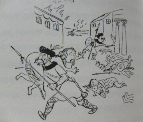 " 알렉산드로스의 제국도 금세 산산조각이 났다. 대왕이 남긴 업적은 수많은 사람을 죽였다는 사실 외에 별다른 것이 없었다. 그는 건설적인 일은 아무 것도 하지 않았다.   (...) 그가 남긴 업적이 있다면 유럽에 가지를 들여온 정도였다. (...) 나는 그에게 뚜렷한 목적의식이 있었는지조차 의심스럽다. 그는 평소에 눈살을  찌푸리는 버릇이 있었다고 한다. 당연히 그래야 했을 것이다. " (p. 111)
