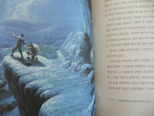 아마도 내가 오래전에 읽었던 <천로역정>은 원문을 그대로 번역한 책이었던 것 같은데, 이번에 읽게 된 책은 '존 버니언'이 쓴 원문을 읽기 쉽게 'C.J. 로빅'이 다듬어서 편집하였고, '마이크 윔머'가 그린 33 장면의 그림이 담긴 책이다. 그리고 책의 뒷 부분에는 55 페이지 정도의 '편집자 주'가 달려 있다.