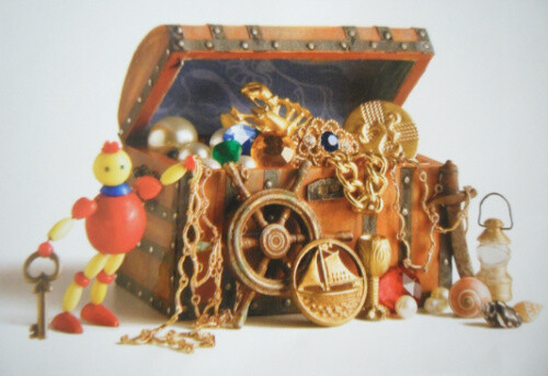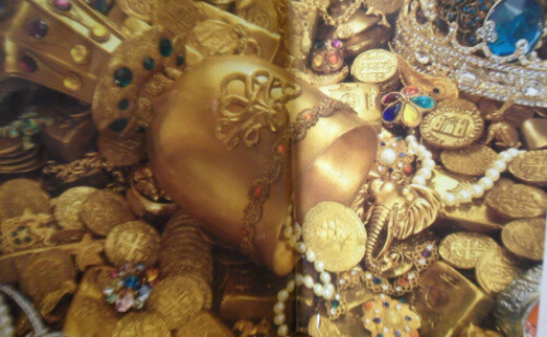 다음 장의 그림은 앞 장의 그림보다 좀 더 스케일이 커진다. 황금 동전이 중심이 되는 것이 아니라, 황금동전은 그림의 일부분으로 황금컵을 중심으로 각종 보석들과 황금 동전이 보여진다.