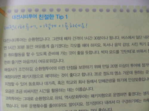 지금까지 시티투어에 대해서 전혀 알고 있는 정보가 없었기에 이 책을 통해서 많은 정보를 얻을 수 있었다.