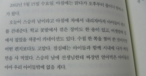 스승의 날에는 선생님이 학생들과 시내 나들이를 가서 짜장면을 사 주기도 하는 그런 이야기가 담겨 있다.