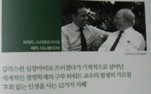 약 8년간에 걸쳐서 알아 온 하워드 교수의 폭넓은 경험과 지혜와 통찰력을 통해서 우리에게 정말 필요한 것이 무엇인지, 성공이 무엇인지, 급변하는 이 시대에서 어떻게 하면 최적의 항로를 찾을 것인지를 배우게 되는데, 그것은 에릭이 하워드 교수와의 대화를 통해서얻게 된 산물이다.