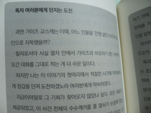 헛다리를 짚게 마련이다. 추리소설을 읽는 재미는 범인을 찾아내는 것이라고 할 수 있으니, 단 한 순간도 놓치지 말고 따라잡아야 한다.