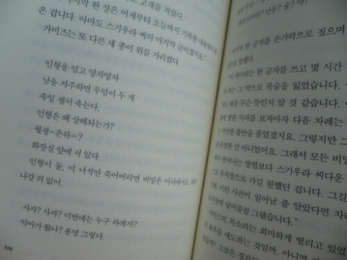 인형과 살인사건이라고 하니, 사탄의 인형 처키가 떠오르지만, 이 소설 속의 인형은 단지 살인을 예고하는데 사용되는 장치일 뿐이다.