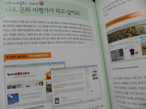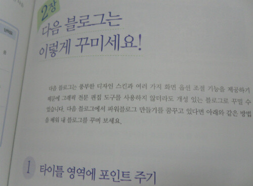 특히 블로그로서 가장 인기가 있는 다음 블로그, 네이버 블로그, 티 스토리 블로그의 사례를 중심으로 설명을 해 주는데, 그중에서도 다음 블로그에 좀 더 많은 비중을 두고 있다.