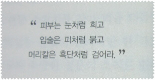 " 백설처럼 희고 정교한 얼굴 도톰한 입술 진실을 꿰뚫어 보는 듯한 검고 깊은 눈.... 너무도 닮았다. "