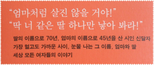 이번에 시인은 엄마와 딸에 대한 이야기를 썼다. 책 뒷표지의 글 중에 이런 문구가 눈에 들어온다.