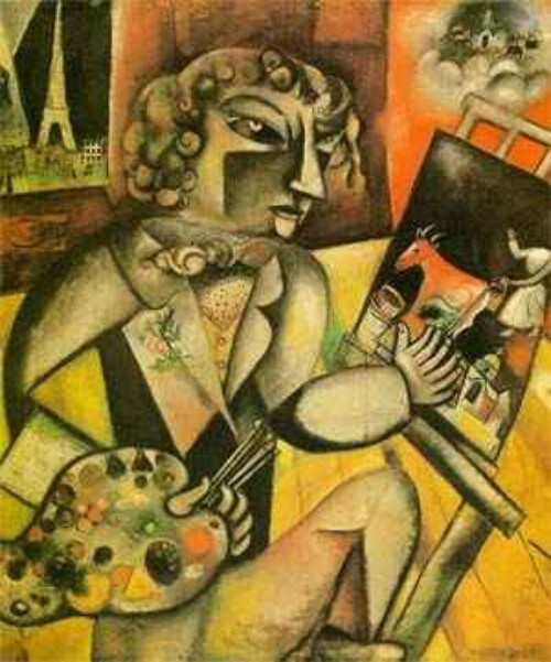 '샤갈'은 자신의 자화상을 그린 그림에서 일부러 신체의 일부분을 잘못 그렸다. 자세히 보면 손가락이 7개이다. 화가로서 오른손이 7개 였으면 얼마나 좋을까 하는 생각을 했었던 것은 아닐까.