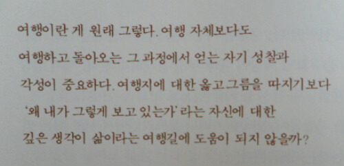 이 책을 읽고 있으면 나도 길을 떠나야 할 것만 같은 그런 느낌이 드는 것이다.
