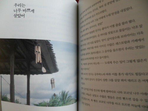 번짐시리즈에서 이미 낯익어진 감성적인 글들. 운치있는 사진들, 수채화풍의 그림.