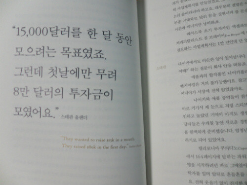 " 페이스북은 돈을 벌 목적으로 서비스를 만들지 않습니다. 우리가 돈을 버는 이유는 보다 훌륭한 서비스를 제곡하기 위해서 입니다. " (p. 60)