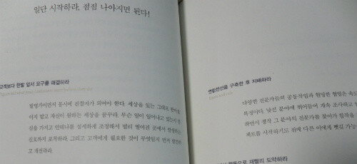 또한, 이 책에서 '속도전의 시대에서 기업이 살아 남고 발전할 수 있는 영원불멸의 7가지 법칙'을 하나의 법칙을 한 장에서 다루면서 그 장이 끝날 때는 ' IN SUMMARY'로 요약해 놓았기에, 한 번 읽는 것으로 끝내지 말고, 필요할 때마다 간추린 내용을 다시 한 번 읽어 보아도 좋을 것같다.