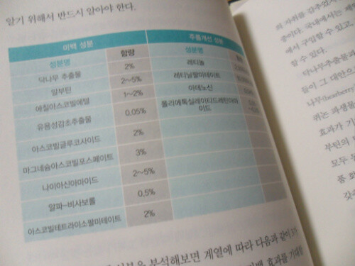 <대한민국 화장품의 비밀>에서도 화장품 케이스의 뒷면에 적혀 있는 성분 분석표의 중요성을 일깨워 주었듯이 < 명품 피부를 망치는 42가지 진실>에서도 화장품은 반드시 성분 표시를 확인하는 것이 필수적임을 말해준다.