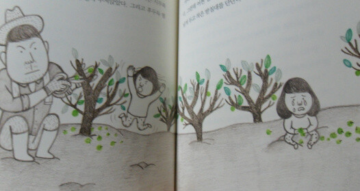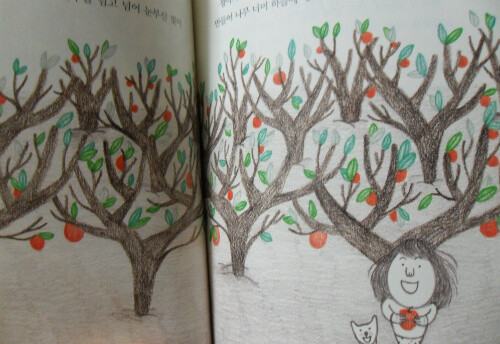 두 번째 이야기인 < 사과가 봉봉봉>과 다섯 번째 이야기인 <어린나무>는 사과밭에서의 이야기를 들려 주다.