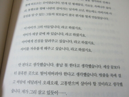 " 부부라는 이름으로 행복을 꿈꾸고 있다면, 배우자한테 바라기 보다 우선 내가 먼저 어떻게 하는 것이 좋을지 알아가려는 마음이 중요하다. 아무리 극단적으로 관계가 악화된 부부사이라고 하더라도 상대방에 대한 이해와 배려만 있다면 관계는 충분히 회복 될 수 있다. 물론 노력없이 얻어지는 변화는 없다는 사실만 잊지 말자. " (p. p. 133~134)