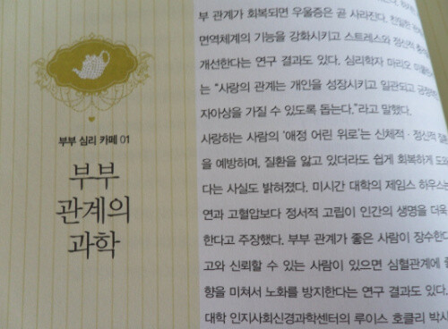 이 책에는 part가 끝날 때마다 <부부 심리 카페>가 있어서 배우자의 심리를 살펴 볼 수 있기도 하다.