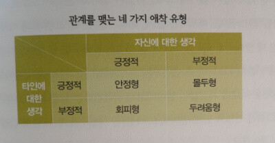 부부 갈등의 해결방식에도 물론 차이가 있어서 성인의 사랑을 이해하는데 영향을 주는 애착이론을 알아 두면 좋을 것이다.