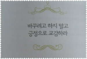 그런데, 이 책을 읽으면서 명심해야 할 것은 배우자를 고치려는 의도로 이 책에 접근하면 좋은 결과를 얻기 어려운 것이다. 먼저 자신에게 적용한다는 생각을 가지고 있을 것이며, 배우자보다는 자신이 먼저 변해야 된다는 것이다.