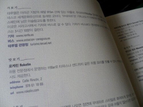 책 속에는 한 지역의 이야기가 끝나면 'travel memo'로 가보기, 맛보기, 머물기, 둘러보기 등에 관한 정보를 실어 주고 있다.