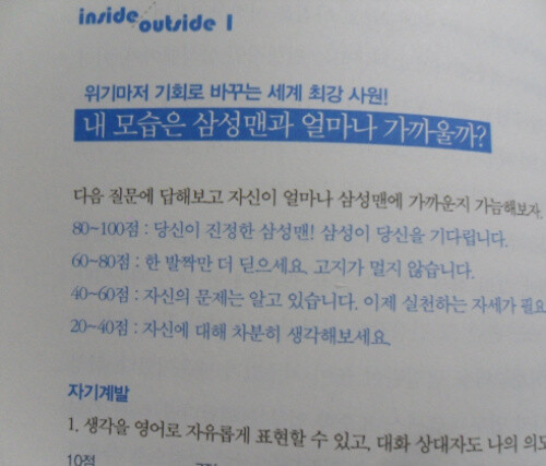 같은 책이라고 해도 그 책을 읽는 사람이 누군가에 따라서 도움이 될 수도 있고, 전혀 아무런 도움을 줄 수도 없는 책이 있는데, <인사이드 삼성>이 그런 책이 아닐까 생각된다.