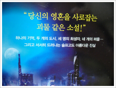 책표지 뒷면에 나오듯이 '하나의 기억, 두 개의 도시, 세 명의 희생자, 네 개의 퍼즐.....' 하나의 기억은 7년전의 연쇄살인 사건이 얽힌 기억- 매코이의 기억뿐이 아닌 심리분석관인 라일라에게도 숨겨진 살인에 관한 괴로운 기억이 있다. 두 개의 도시가 저자의 상상의 미지의 도시이라는 설정이 있기에 이 작품이 더 돋보인다는 생각이 든다. 우리나라의 어떤 도시였다면 어색했을 것같은 이야기이다. 세 명의 희생자들은 폭력이나 악의 희생자들이며 마음에 상처를 안고 살아가던 여자들이다.