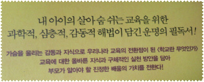 많은 학부모들이 이 책을 읽고 뭔가 깨달음을 갖고 자녀들에게 새로운 방법의 교육을 모색하는 길잡이가 되었으면 하는 바람이다.
