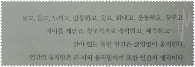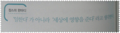 " 픽사에 대한 집착을 보고 있으면 잡스의 '열정이 가득하지 않으면 살아 남을 수 없다. 열정이 없으면 사람은 포기해 버린다. '라는 말이 떠오르기 때문이다. (...) 열정을 쏟을 수 있는 아이디어나 문제를 가져야 한다. 바로잡고 싶은 잘못도 좋다. 그렇지 않으면 원하는 바를 끊임없이 추구할 수 있을 만큼이 인내력을 가질 수 없다. 견딜 수 있다면 성공한 것이나 다름없다. " (p185)