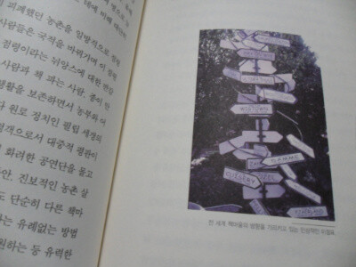"책마을의 중심지라도 되듯 마을 로터리에는 전세계 책마을을 알리는 이정표가 서 있다. 농사꾼과 책파는 서점, 종이 만드는 사람들이 한데 어울려 사는 시골마을. 이곳에서 그동안 잊고 있었던 사색과 작가의 이야기를 만난다. " (p108)