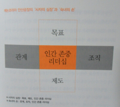 " 캐논코리아 안산공장의 성공 비결은 (...) 모든 공을 구성원들에게 돌리고 그들 중 단 한 사람이라도 놓치고 싶지 않아 하는 경영진과, 위기에 처한 회사를 되살리기 위해 스스로 일어섰던 구성원들의 궁합이다. " (P 21)