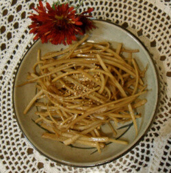 이 방법에서 껍질 벗긴 우엉을 기름에 살짝 튀겨서 같은 방법으로 조리면 또다른 맛이 난다고 한다.